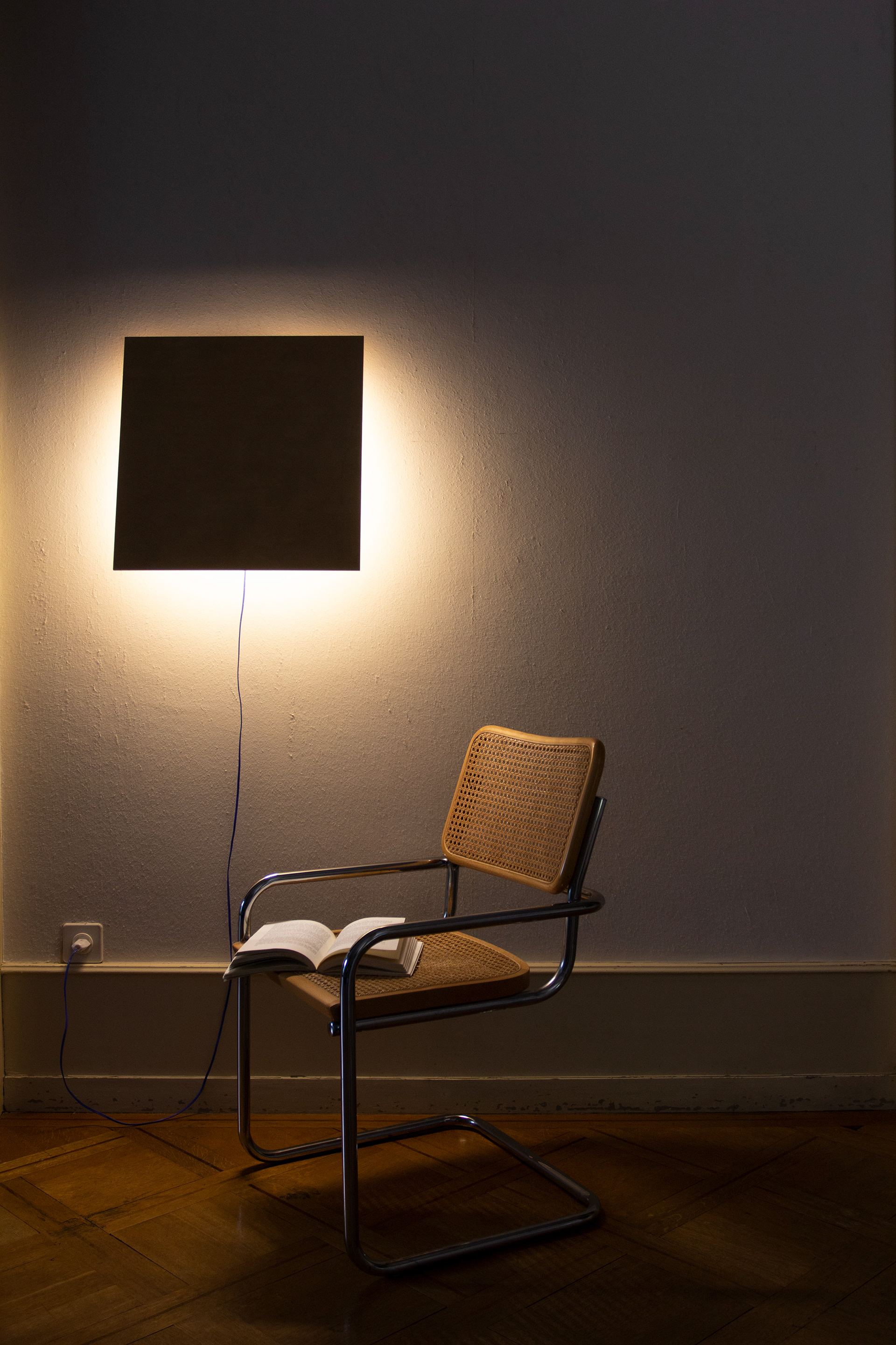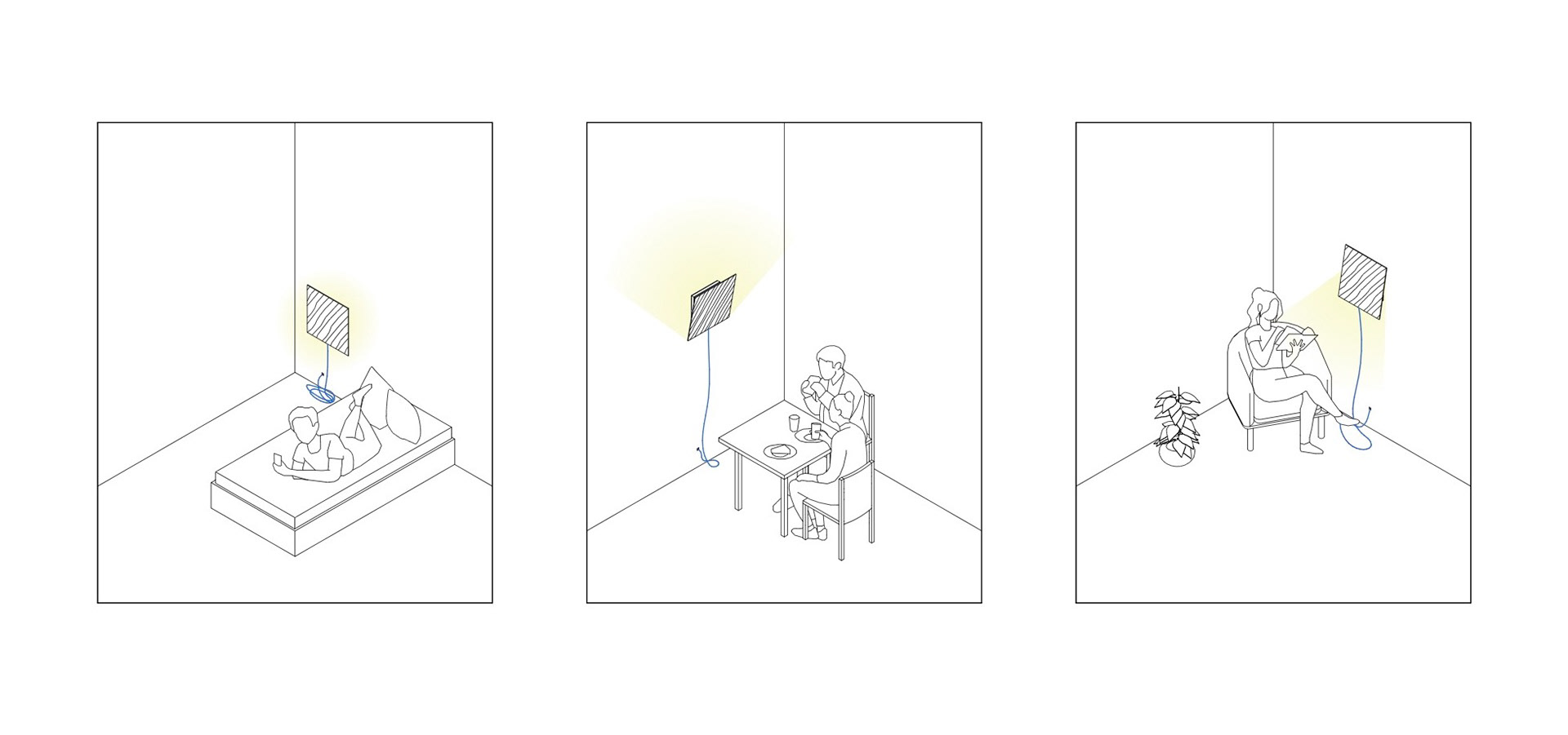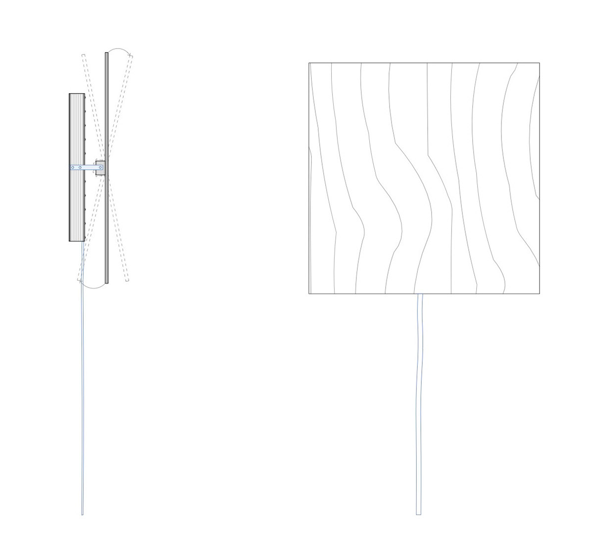 When off, the objects acts as an art piece on the wall. When on, the coffee-dyed wood reflects a beautiful warm and cozy light. The pivoting mechanism allows flexibility in its usage.