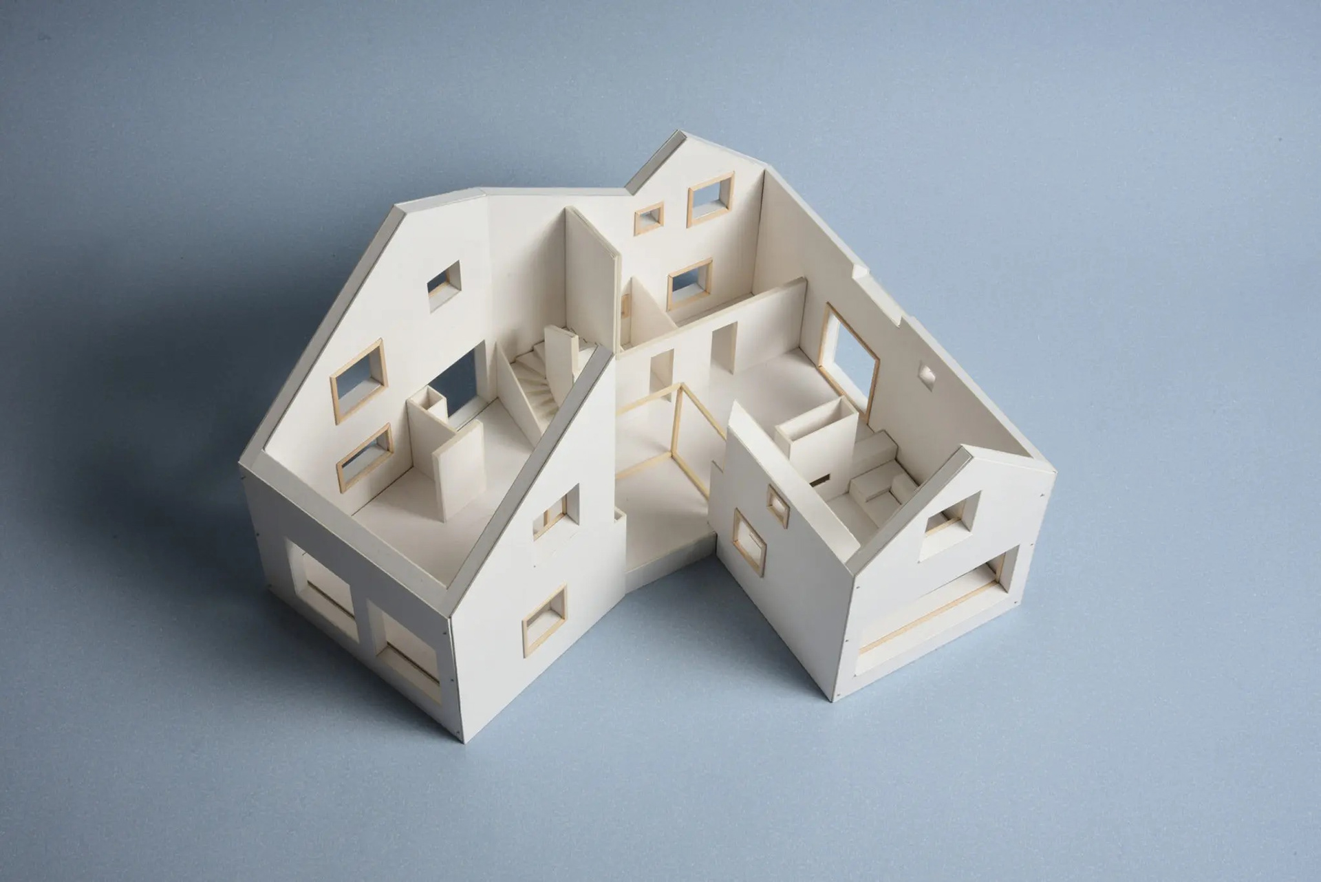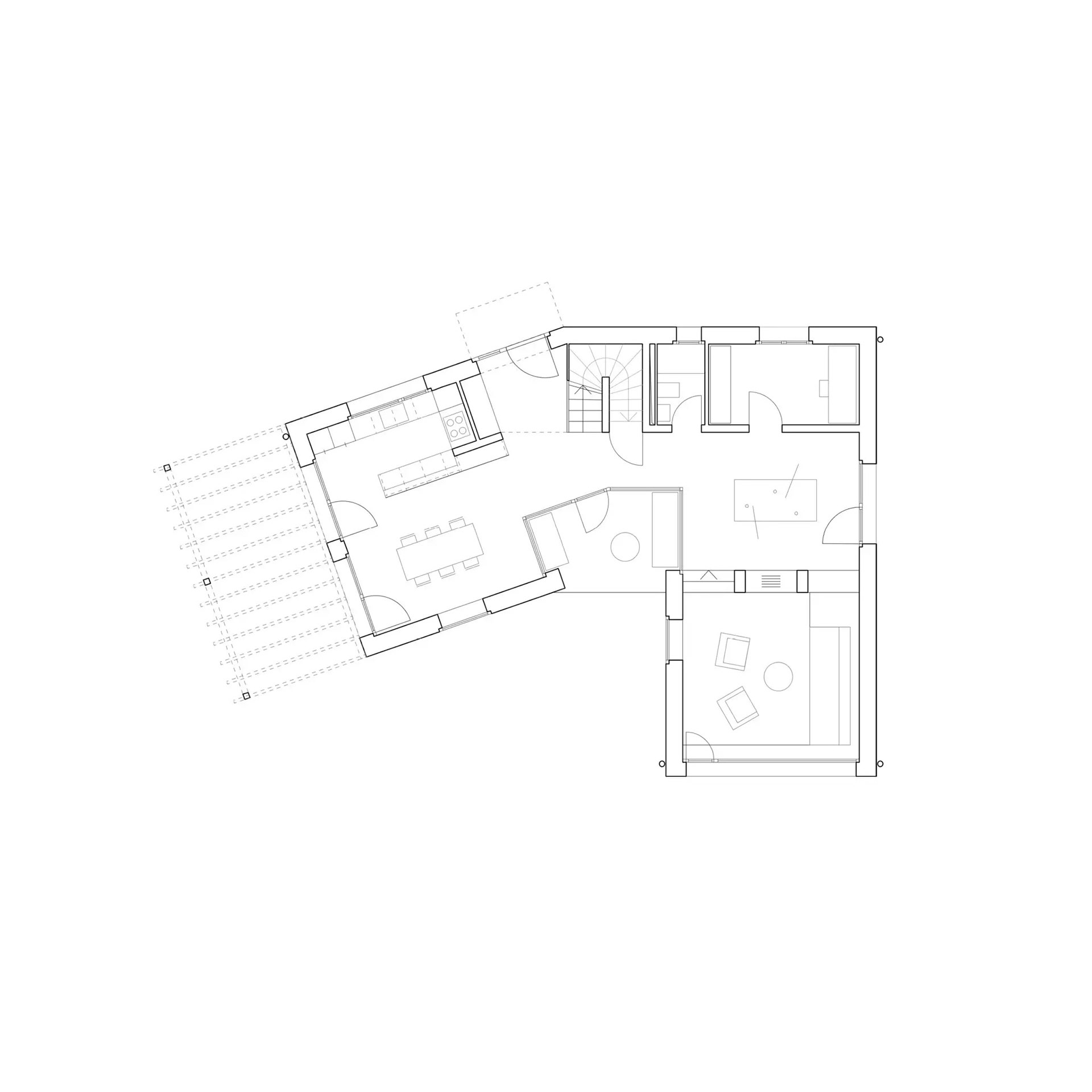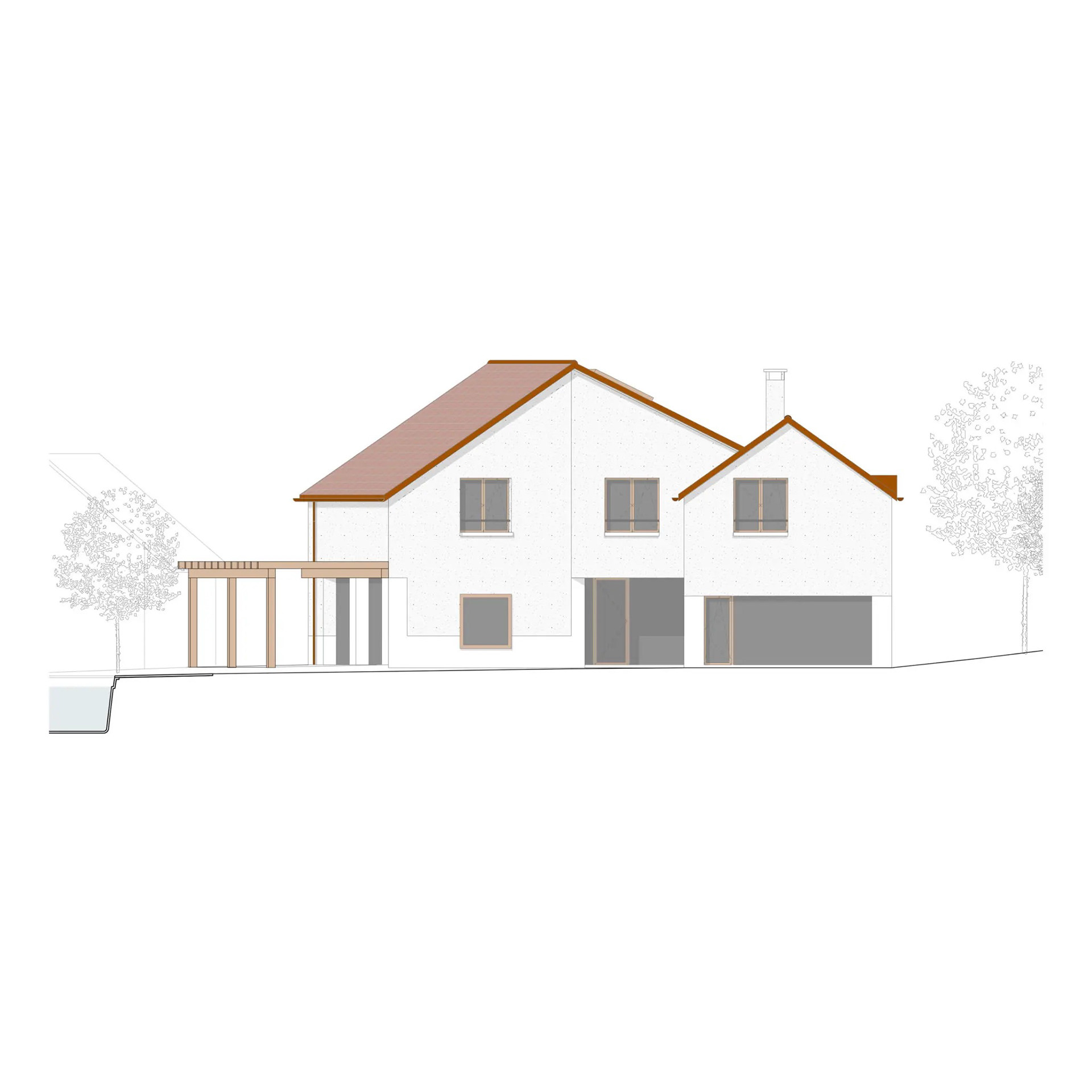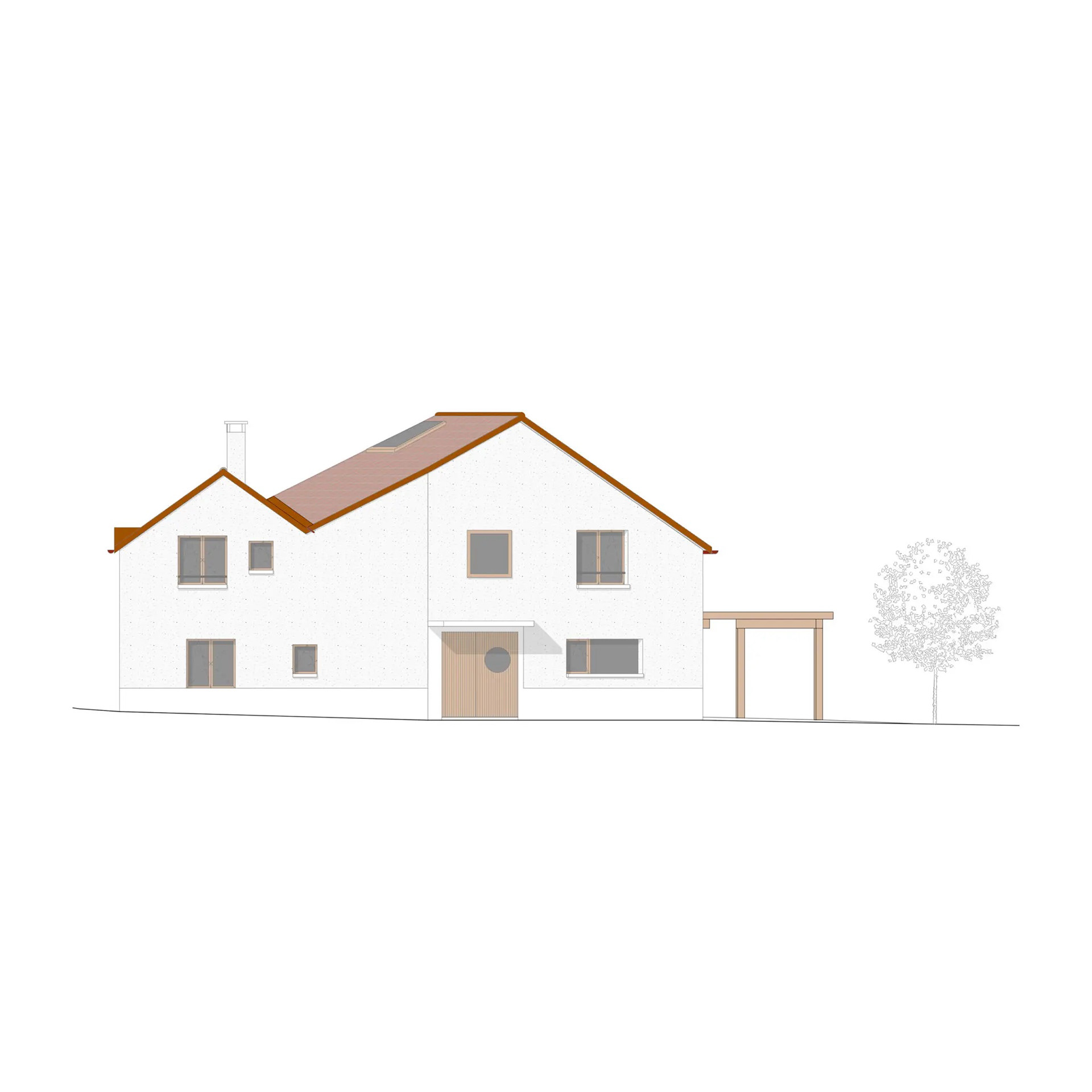 Located in a residential neighborhood, this new home reflects the architectural language of the region through its form, implementation, and materiality. The design emerges from two interlocking volumes shaped by the plot’s geometry, creating a comfortable and natural flow between interior and exterior spaces while clearly organizing the dwelling’s different functions.