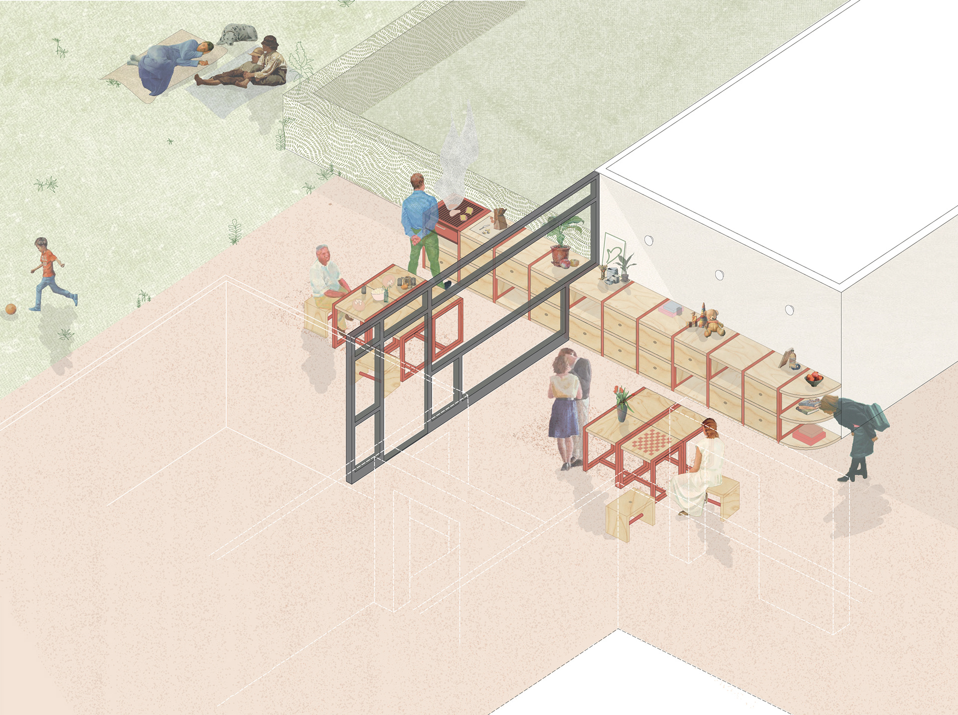 We believe that by bringing life into these in-between spaces, we can create a greater sense of belonging, that can then extend into a stronger and more sustainable community. THRESHOLDS is both calming and fun, its design is considerate of the residents and of the architecture, but most importantly it is full of possibilities and hope.